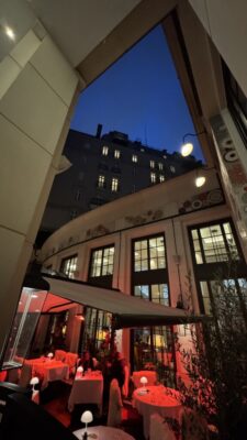 Beautiful courtyard brasserie of The Corinthia Hotel