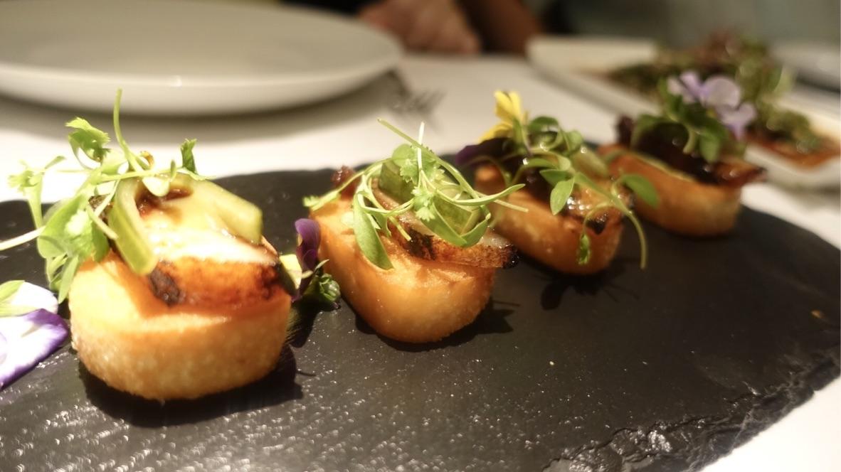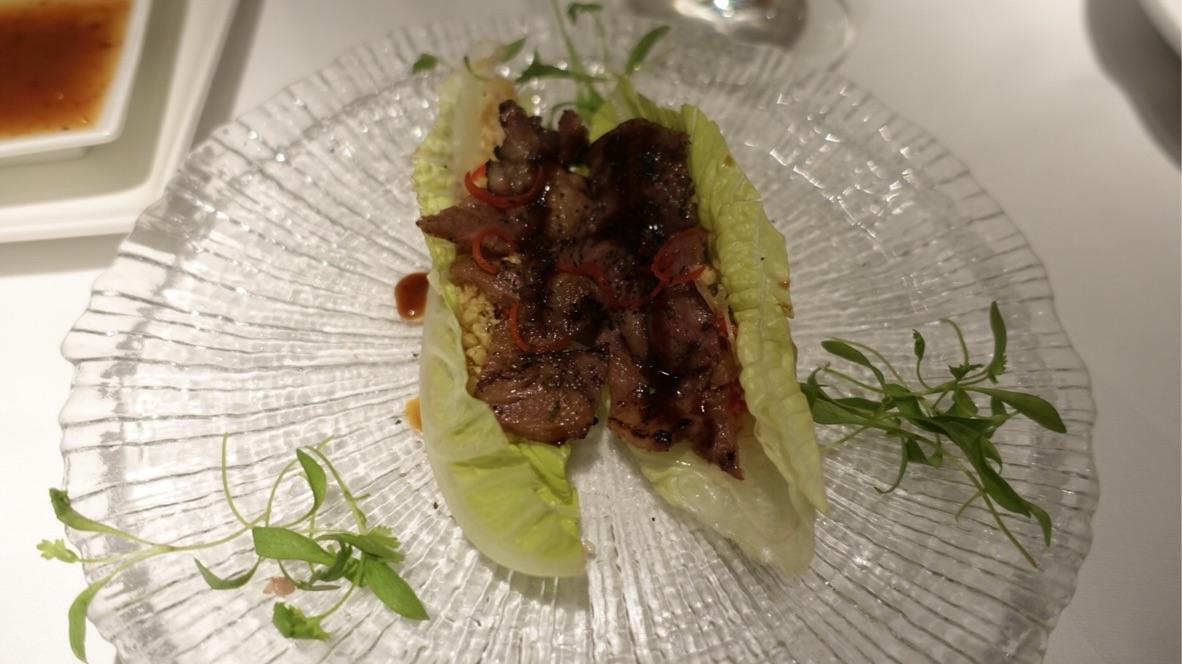 Nibbles arrived in the form roasted Duke of Berkshire pork belly, ‘char-siew’ BBQ glaze, crispy Bao, pickled cucumber which were entirely doable as were the strips of lightly seared beef fillet with soy vinaigrette, shallot oil & chopped coriander, although the latter could have had slightly more kick from the soy for me. Clearly, the sesame prawn toast had to be done and even though virtually identical to as it was 7 years ago, they were still, as good as they come when it comes to a simple offering (nice and light but with good crunch and toned down oil at the same time).