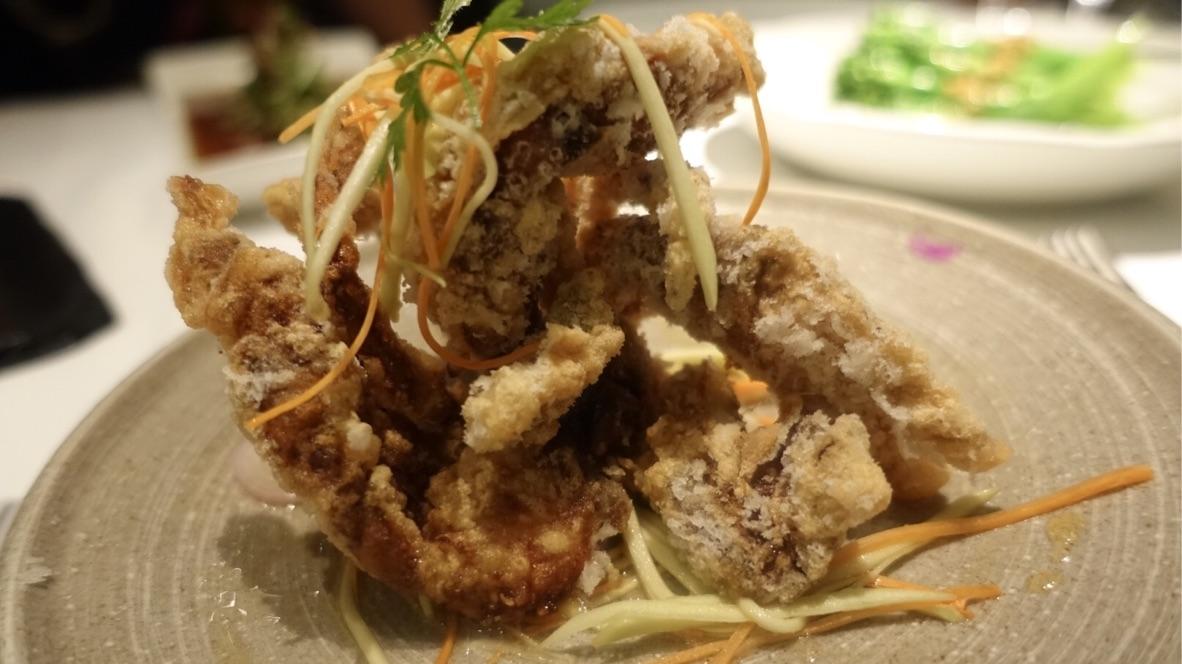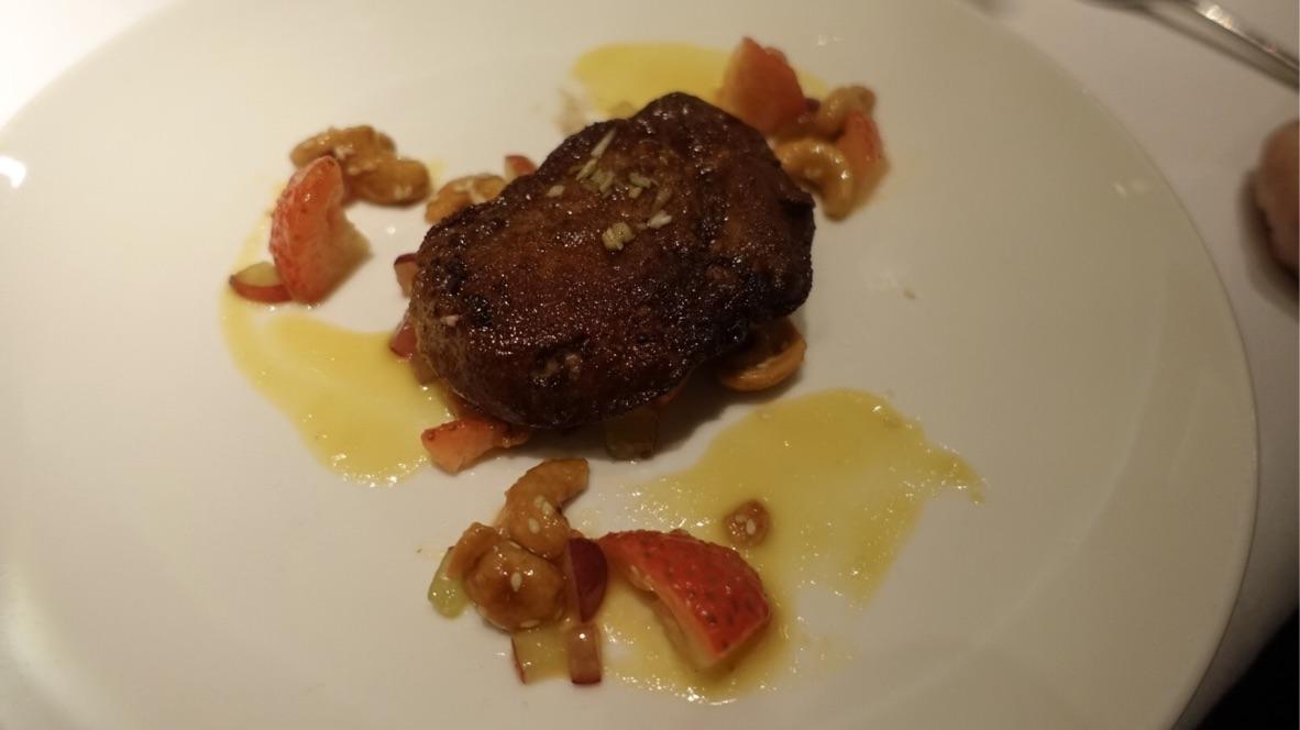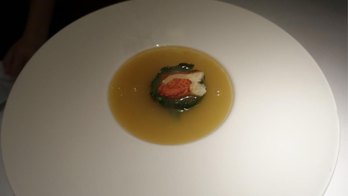 The ‘pigs in blankets’ consisted of Iberico pork, plum and lime dressing, chopped cashew, sliced shallots, Cos lettuce wraps and these proved good, but simply over in two mouthfuls – another £17 down the tube in under a minute. Pan-fried foie gras of caramelised cashews, white pepper, spring onions, grapes, passion fruit dressing was very well done – great textures and sweet aspects working nicely together and moreover, the foie gras held itself together as well without being overcooked. The Tan Jia’s broth was thick, smooth and packed with flavour as a duck & carrot soup with lobster oil, lobster and spinach. I was also quite pleased with the soft shell crab served with chilli, shallots spiced batter and green mango – this wasn’t the usual drenched in oil affair it can be, so full marks for making the deep fried reminder disappear.