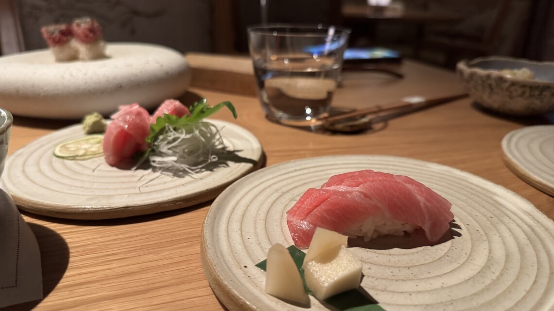 There are set lunch, a la carte and tasting menus available. The lovely touch here is that you really can go for some sushi, sake and coffee and just that if one wanted or the full £130 tasting menu. After some superb Otoro (full fat tuna), on this opening occasion I opted for the king crab chawanmushi served with N25 hybrid caviar and ginger, kaffir and yuzu as the starter. A middle course tried was the pasta – Chashu pork ramen ravioli which was pretty, but sadly a little bland.